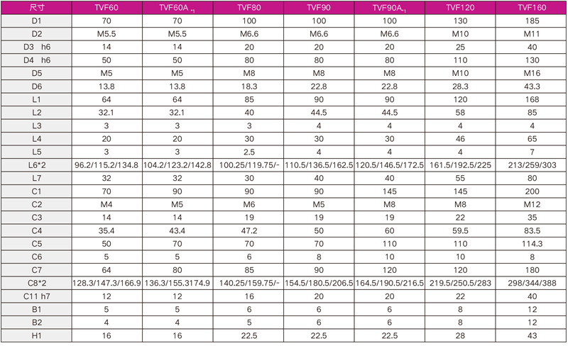 TVF系列性能參數(shù)表 / TVF Series Performance Table | ||||||||