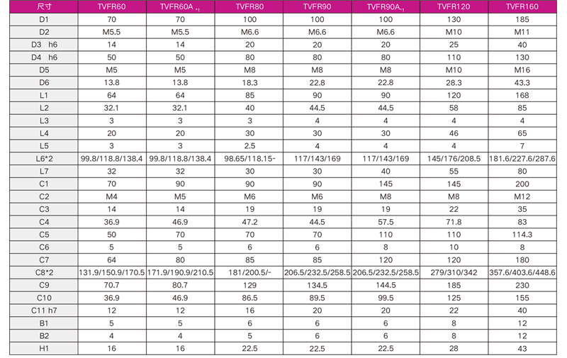 TVFR系列性能參數(shù)表 / TVFR Series Performance Table | ||||||||