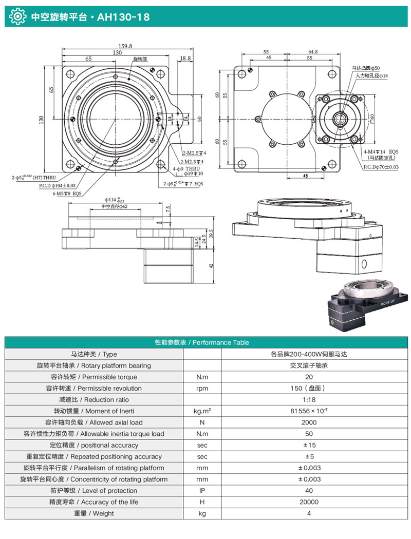 無齒隙,定位精度≤15sec,重復(fù)定位精度可達(dá)±5sec