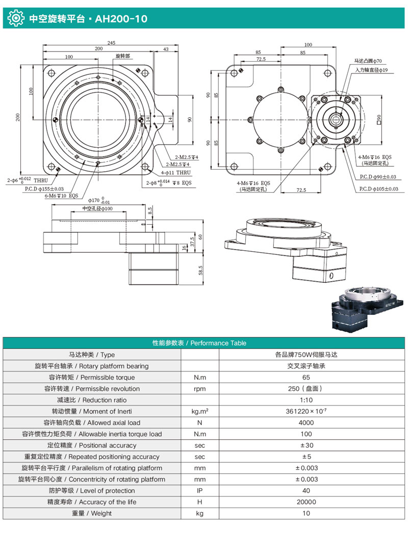 無(wú)齒隙,定位精度≤15sec,重復(fù)定位精度可達(dá)±5sec