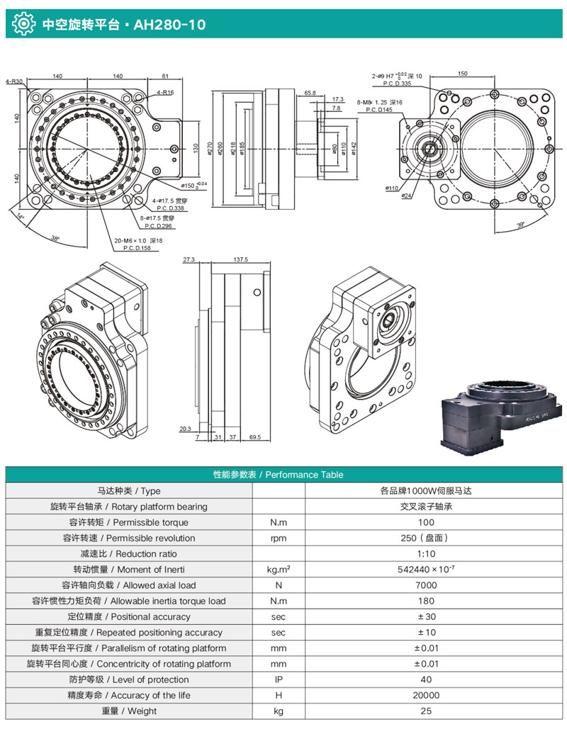 中空旋轉(zhuǎn)平臺AH280-10